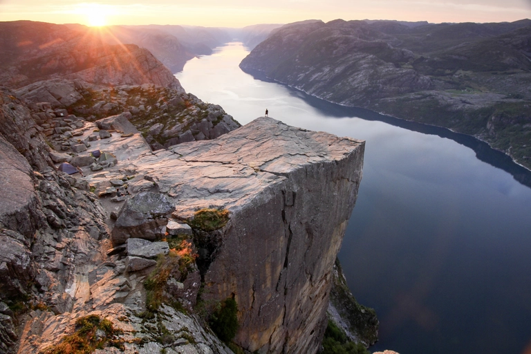 Tief eingeschnittene Fjorde ziehen sich wie gewaltige Wasseradern ins Land. Steile Felswände spiegeln sich in tiefblauen Buchten, während Panoramastraßen sich in weiten Kurven entlang der Küste ziehen. Auf spektakulären Routen, auf Wanderwegen mit weitem Blick oder auf Schiffspassagen, die durch enge Fjordarme führen.