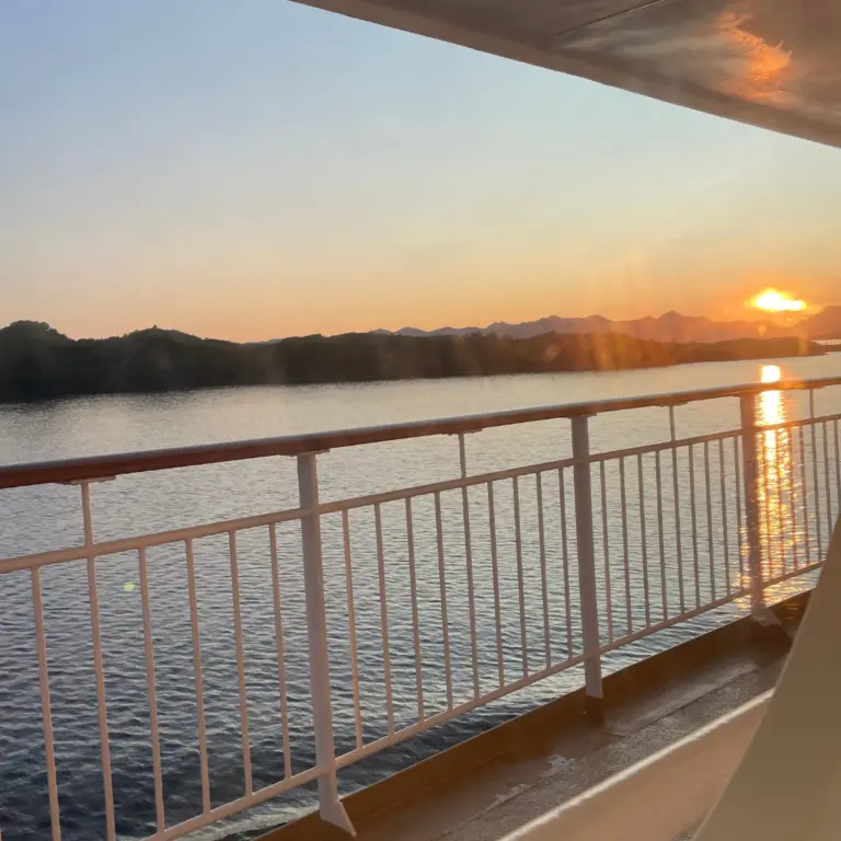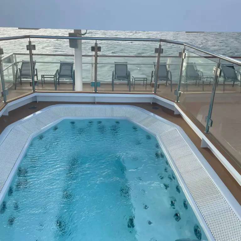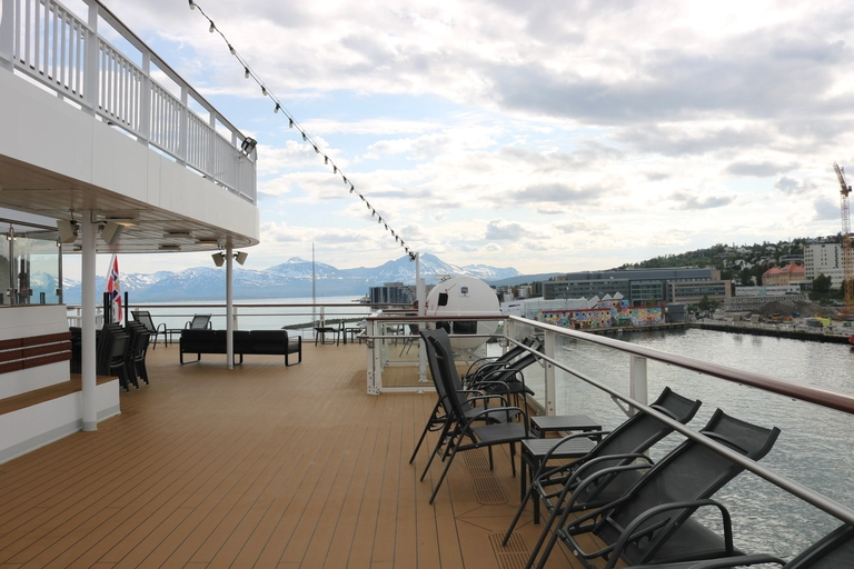 Nach einem kurzen Aufenthalt in unserer Kabine, verschafften wir uns einen Eindruck vom Schiff: Einrichtungen wie das Fitnessstudio, die Sauna und Bibliothek, der Souvenirshop und das Havly Café wurden von uns besucht. Auch am Ausflugscounter begegneten wir der freundlichen Crew und stellten einige Fragen zu unserem Ausflug am nächsten Tag. Zunächst erkundeten wir das Außendeck mit seinen vielen Sitz- und Liegemöglichkeiten und den beiden Whirlpools.