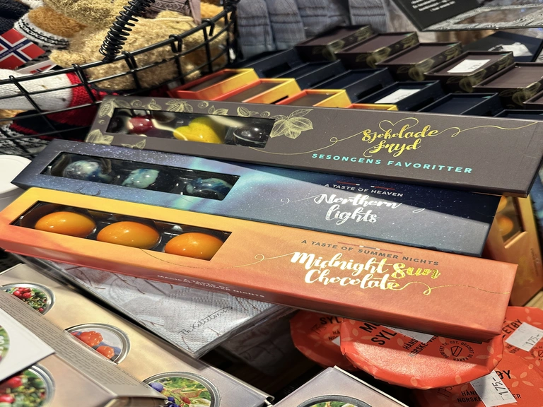 Unweit der Holzhäuser befindet sich der Fischmarkt. Zahlreiche Meerestiere können hier probiert und gekauft werden. An Ständen lassen sich aber auch norwegische Produkte wie Rentier- und Walsalami erwerben.