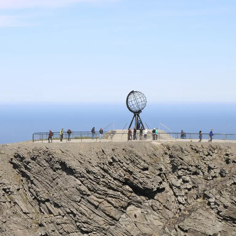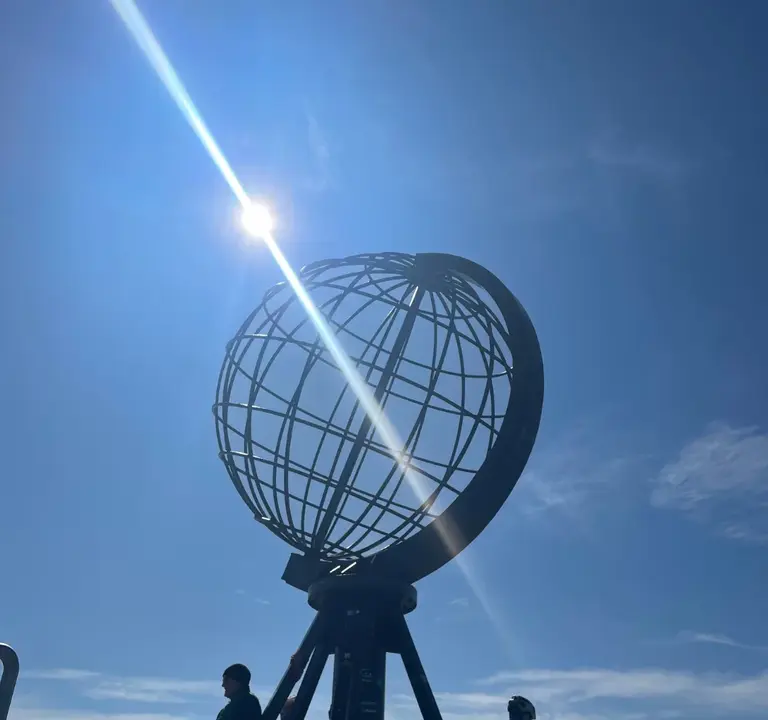 Umgangssprachlich wird er als nördlichster Punkt Europas bezeichnet. Genau genommen ist der nördlichste Punkt Europas, auf befestigter Straße - den man mit dem Bus oder Auto erreichen kann. Der Globus des Nordkaps zeigte sich vor strahlend blauem Himmel und der Horizont dahinter schien geradezu unendlich. Wir schossen einige Erinnerungsfotos, nahmen uns aber auch Zeit zum Innehalten.