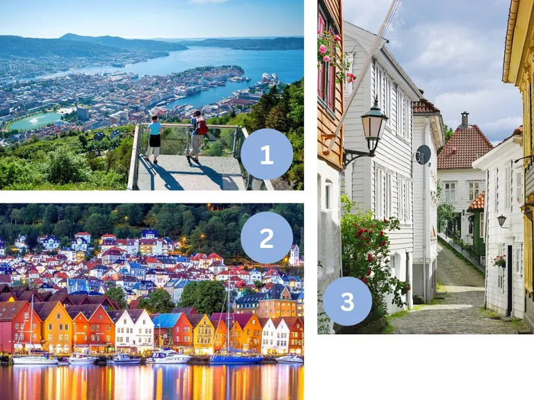 Bergen liegt eingebettet zwischen Bergen und Meer – kompakt, authentisch und voller Charakter. Die Stadt verbindet hanseatische Geschichte mit moderner Lebensart. Ob ein Rundgang durch das UNESCO-geschützte Viertel Bryggen, ein Besuch des traditionsreichen Fischmarkts oder der Blick vom Fløyen über Stadt und Wasser: Bergen zeigt sich vielseitig und lebendig – bei jedem Wetter.