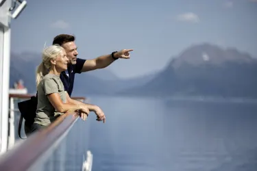 Dieses Frühlings- und Sommerabenteuer führt Sie von Ålesund in das Herz eines der berühmtesten Fjorde Norwegens, mit Geschichtenerzählen, Kultur und einer Prise Wasserfallmagie. Begeben Sie sich auf eine nordwärts gerichtete Reise von Ålesund nach Geiranger und erkunden Sie den UNESCO-gelisteten Fjord mit einem Besuch im Norsk Fjordsenter, einem optionalen Wasserfallspaziergang und mehr. Ihre Reise beginnt mit einer malerischen Bootsfahrt von Ålesund nach Geiranger, begleitet vom Havila-Ausflugsteam, das faszinierende Geschichten über das Fjordleben, sowohl aus vergangenen als auch gegenwärtigen Zeiten, teilt. Etwa 5-stündiger Ausflug, bei dem Sie in Geiranger über ein Beiboot aussteigen, um dort von diesem UNESCO-gelisteten Wunder beeindruckt zu werden. Eine kurze Busfahrt bringt Sie zum Besucherzentrum, wo Geirangers natürliche Schönheit auf Geschichte und Tradition trifft. Fossevandringa – Spaziergang mit den Wasserfällen:Lust auf ein Abenteuer? Begleiten Sie den Fjord Ranger auf einem geführten Spaziergang entlang des Fossevandringa, einem atemberaubenden Wasserfallpfad mit 327 Stufen und Panoramablick auf den Storfossen. Bevorzugen Sie es ruhiger? Genießen Sie einen entspannten Spaziergang in Ihrem eigenen Tempo und nehmen Sie die Aussichten vom festen Boden aus wahr.