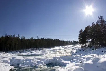 Direktflug ab Deutschland nach Arvidsjaur. Am Flughafen begrüßt Sie die örtliche Reiseleitung. Transfer nach Storforsen (Dauer ca. 1,5 Std.).