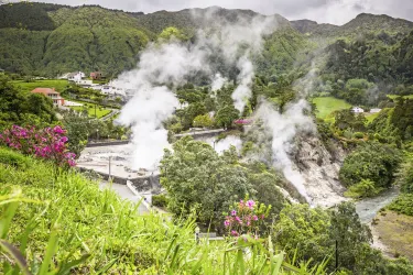 Der Ort Furnas, mit seinen 22 Thermalquellen, gehört zu Europas größtem Thermalgebiet und ist eines der beliebtesten Reiseziele auf São Miguel. Probieren Sie unbedingt den Eintopf Cozido das Caldeiras, dieser wird in Erdlöchern gegart und ist ein typisches Gericht auf den Azoren. Der Terra Nostra Park beheimatet exotische Pflanzen und jahrhundertealte Bäume. Ein Thermalpool lädt zum Baden ein.