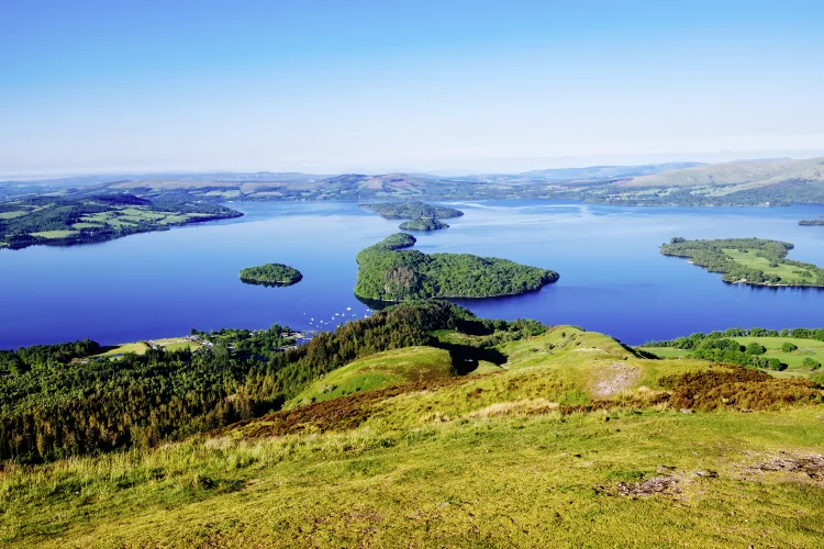 Die heutige Fahrt führt Sie durch die abwechslungsreiche Landschaft des südlichen Hochlands mit grünen Tälern, glitzernden Seen und kleinen Ortschaften. In Killin legen Sie einen Stopp ein – hier rauschen die Wasserfälle der Dochart über breite Felsstufen mitten durch den Ort. Nebenan besuchen Sie das Falls of Dochart Smokehouse und probieren lokale Räucherspezialitäten wie geräucherten Fisch und Käse. Anschließend geht es weiter zum Loch Lomond, dem größten See des Landes. Im malerischen Luss gehen Sie an Bord eines Ausflugsschiffs und erreichen nach ca. 30 Min. die unbewohnte Insel Inchcailloch, wo Sie inmitten unberührter Natur ein gemeinsames Picknick genießen.