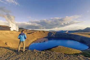 Sie halten an der Studlagil-Schlucht, bekannt für ihre beeindruckenden Basaltsäulen. Weiter entlang der wüstenhaften Ebene Mödrudalsöraefi kommen Sie zum mächtigsten Wasserfall Europas, dem Dettifoss. Sie nähern sich langsam der Myvatn-Region und können bereits von Weiten die Rauchschwaden sehen. In Namaskard qualmt es aus der Erde und Schlammtöpfe köcheln vor sich hin. Das Vulkangebiet Krafla wird Sie, mit dem gleichnamigen Zentralvulkan und dem Kratersee Viti, beeindrucken. Der Besuch des „Götterwasserfalls" Godafoss schließt diesen erlebnisreichen Tag ab.