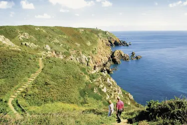 Für eine Wanderung auf dem Klippenpfad bei Jerbourg Point sollten Sie das Fahrrad eine Weile zur Seite stellen und die pittoresken Felsen und malerischen Buchten bewundern.