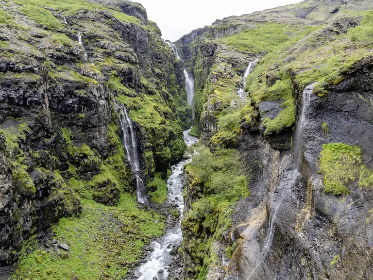 Island hat unzählige Wasserfälle, aber der Seljalandsfoss sticht hervor, da man ihn komplett umrunden kann. Ein Pfad führt hinter den Wasserfall, wo der Wasserschleier und die karge Landschaft besonders bei Sonnenuntergang faszinieren. In der Nähe liegt der versteckte Gljúfrabúi, ein 40 Meter hoher Wasserfall in einer engen Schlucht, zugänglich durch eine Felsspalte.