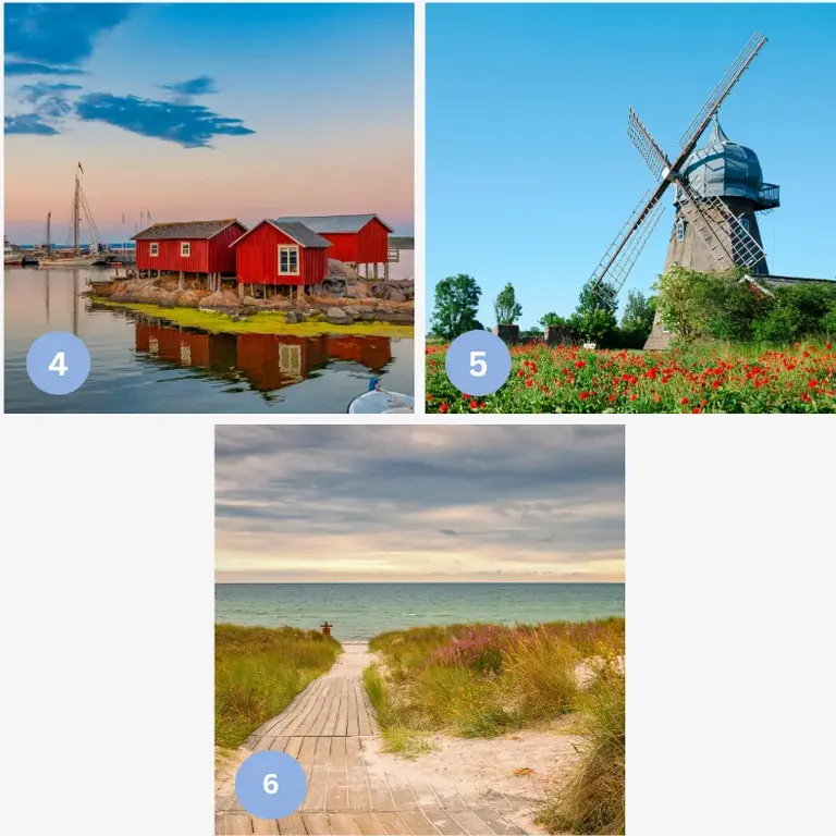 Besonder sind hier die endlosen Strände, windgeformten Ebenen, blühenden Wiesen und das einzigartige Naturgebiet Stora Alvaret, das zum UNESCO-Welterbe gehört. Die Insel vereint wilde Natur mit traditionellen Dörfern.