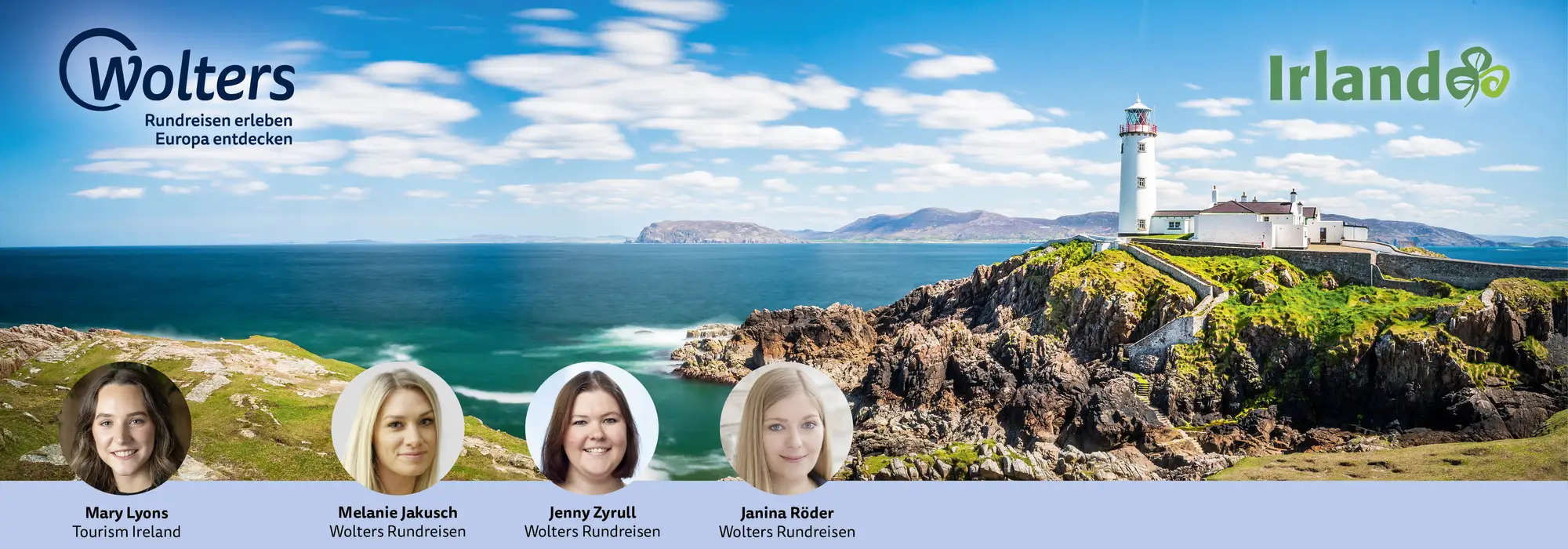 Während Mary euch die schönsten Highlights Irlands näherbringt und Janina von ihren persönlichen Reiseerlebnissen berichtet, versorgt euch Jenny mit wertvollen Beratungstipps zu den beliebtesten Wolters Rundreisen.